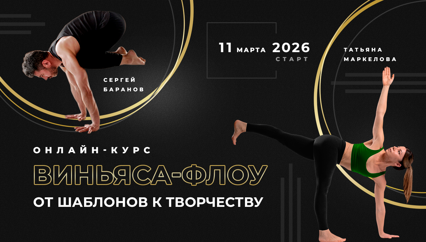 11 марта 2026 стартует курс для преподавателей йоги "Виньяса-флоу: от шаблонов к творчеству" с Сергеем Барановым и Татьяной Маркеловой.